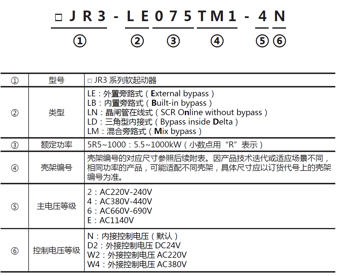 SJR3-LN系列是AG集团公司自主研发二用智能式的软启动器,兼容在线式应用的同时兼备有外置旁路连接方式,增加了欠载,运行次数,运行时间,线性的温度监控等多种功能,内置集成了RS485通讯总线,提供多语种菜单。