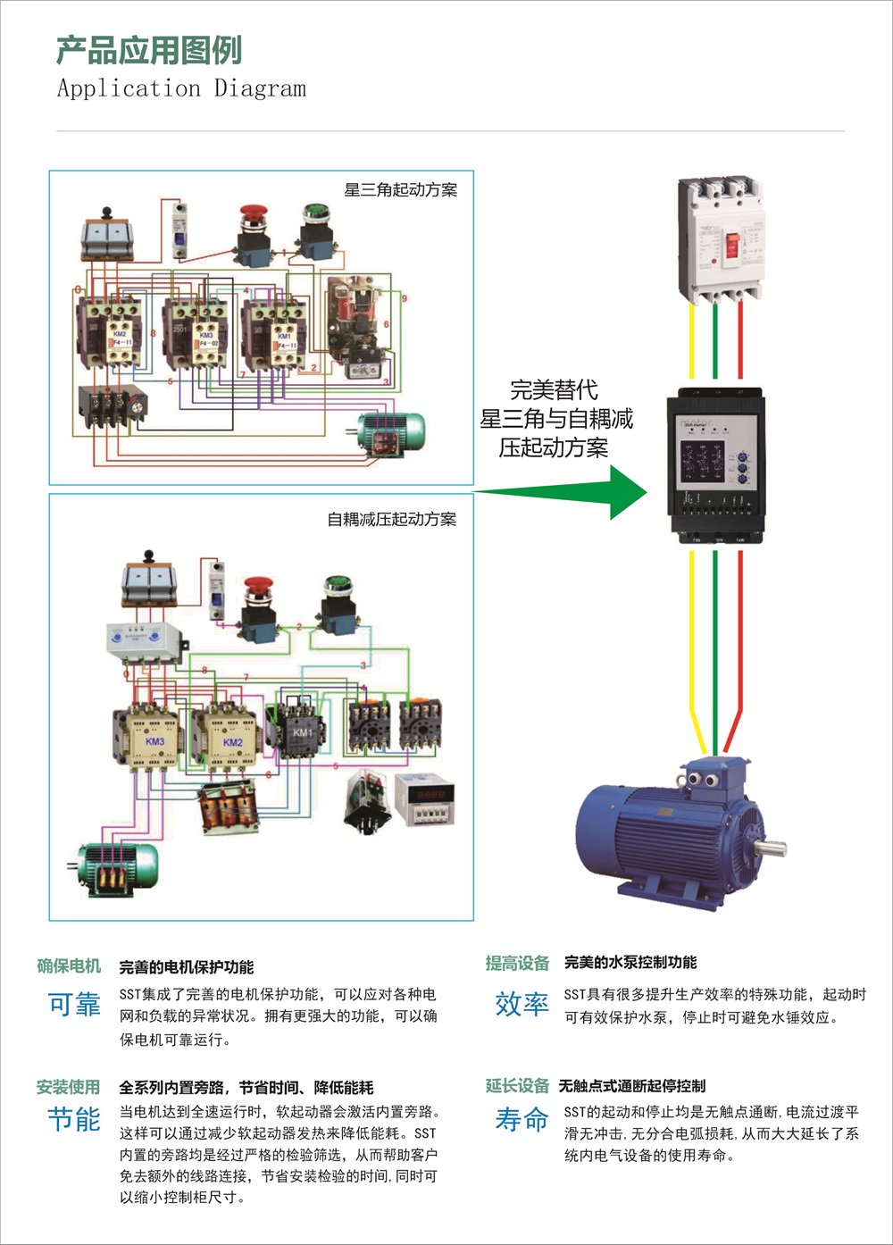 SST-A系列软起动器是一款数字式电机软起动产品,可控制电机在起动过程中平滑加速、停止过程中平滑减速,并提供了针对电动机及产品自身的保护功能。是传统星三角式及自耦降压式起动器的最佳升级替代产品。